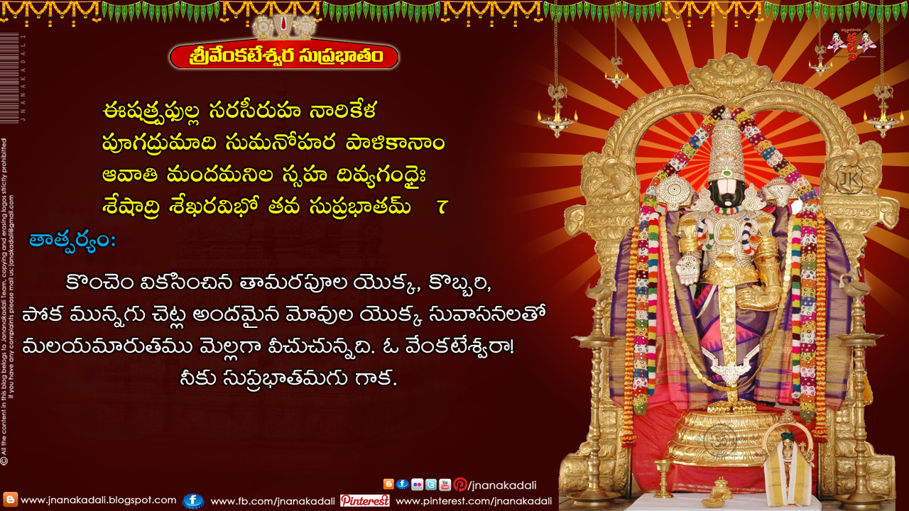 Sri Venkateswara Suprabhatam By Ms Subbulakshmi With Lyrics And Meaning In Telugu And English Jnana Kadali Com Telugu Quotes English Quotes Hindi Quotes Tamil Quotes Dharmasandehalu - Kowsalya supraja rama poorva sandhya pravarthathe uthishta narasardoola karthavyam daivamahnikam sree swamy pushkarinikaplava nirmalangaa sreyorthino hara viranchi sanadadhyaha dware vasanthi varavethra hathothamangaha: